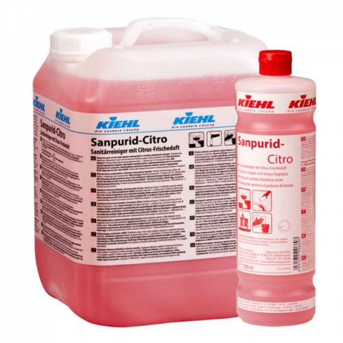 Το Sanpurid-Citro της Kiehl είναι ένα όξινο καθαριστικό καθημερινής υγιεινής με έντονο άρωμα λεμονιού. Απομακρύνει γρήγορα και αποτελεσματικά άλατα, ουρολίθους και υπολείμματα σαπουνιού, αφήνοντας τον χώρο καθαρό και ευχάριστο. Μπορεί να χρησιμοποιηθεί τόσο με συμβατικό εξοπλισμό καθαρισμού όσο και σε αφροσύστημα.